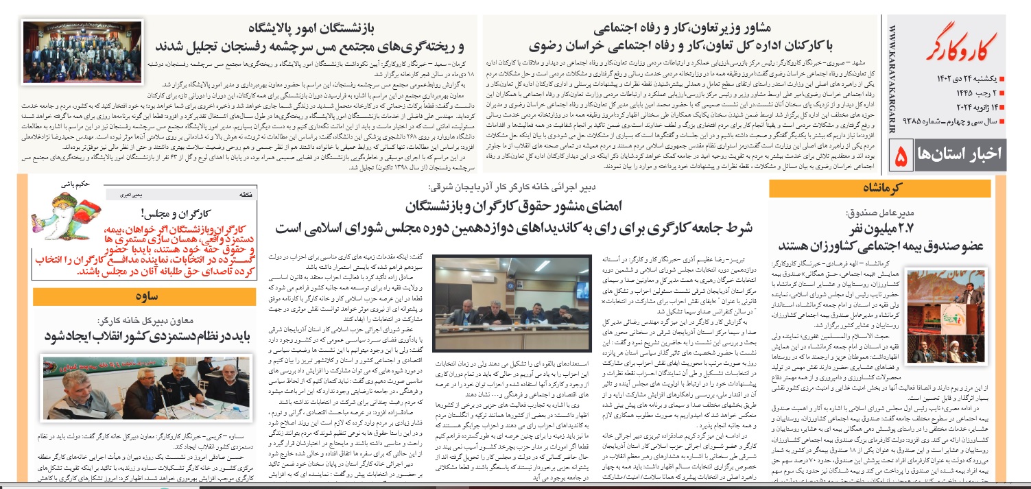 برقراری در ادامه اشاره ای هم به موفقیت آمیز بودن اجرای طرح بیمه تکمیلی برای اعضای صندوق بیمه اجتماعی کشاورزان، روستائیان و عشایر در سه استان همدان، آذربایجان شرفی و اصفهان داشت و گفت: برنامه ریزی کرده ایم در سال ۱۴۰۳ همه مستمری بگیران صندوق را زیر پوشش بیمه تکمیلی ببریم.